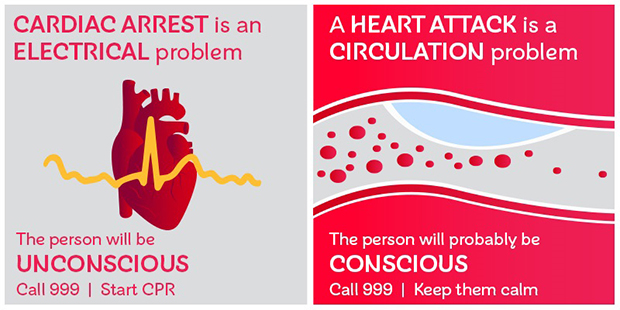A cardiac arrest is a serious emergency. It happens when there's an electrical problem in the heart and it suddenly stops pumping blood around your body. When your heart stops pumping blood, your brain gets no oxygen. It causes the person to fall unconscious and stop breathing. Without CPR the person will die within minutes.